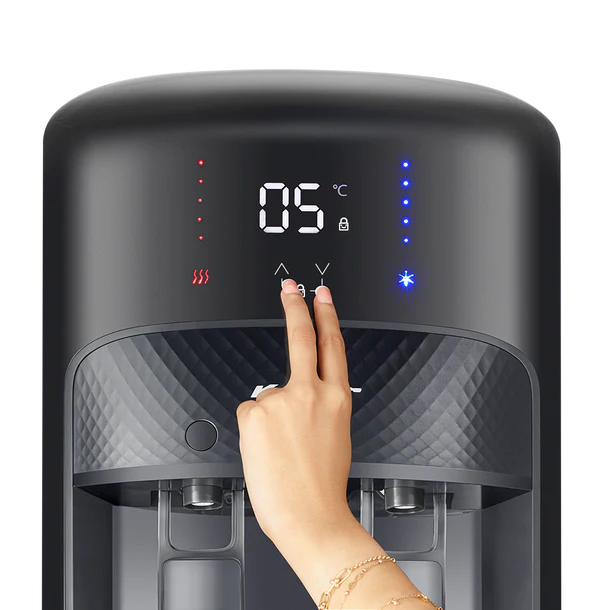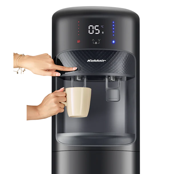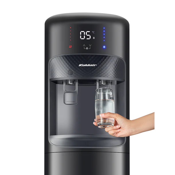 كولدير كلاسيك مع ثلاجة وشاشة تحكم ديجيتال A يعتبر جهاز متكامل يوفر مياه باردة وساخنة على مدار اليوم مع وجود ثلاجة صغيرة مدمجة لحفظ المشروبات والمواد الغذائية الصغيرة ويتميز بتصميم علوي للتعبئة مما يسهل إضافة دون الحاجة إلى رفعه كما أنه مزود بشاشة رقمية لضبط درجات الحرارة ومراقبة عمل الجهاز.